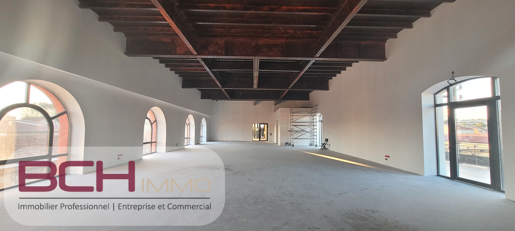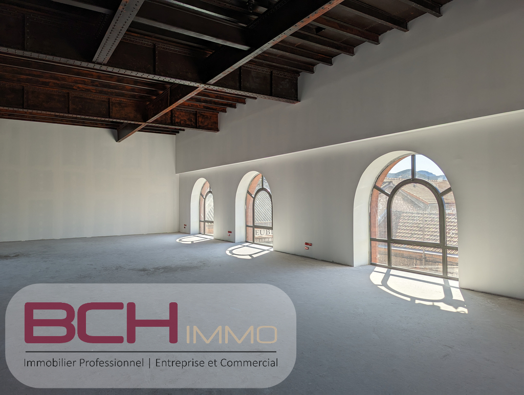 Descriptif : Cet espace de travail de 281m², entièrement rénové avec poutres métalliques apparentes, se situe au 2ème étage d’un bâtiment en pierre.