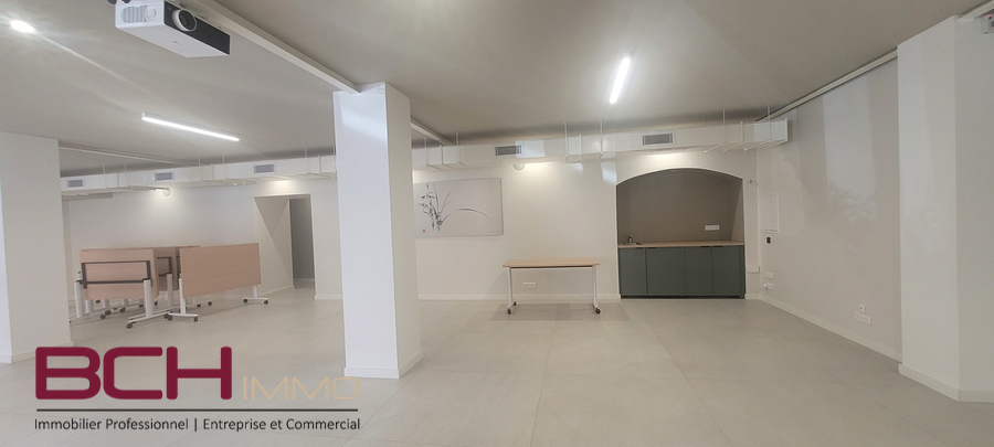 Descriptif : Ce plateau de bureaux entièrement neuf se situe au rdc d’un bâtiment en pierre avec beaucoup de cachet, sécurisé par un digicode.